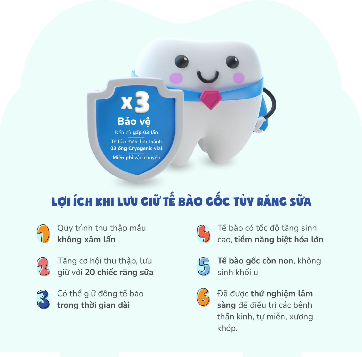 Đáp ứng kịp thời số lượng tế bào gốc cần thiết, tiết kiệm được thời gian phải đi tìm tế bào gốc phù hợp và đạt chất lượng.